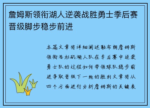 随着比赛的深入,凯尔特人队逐渐拉开了比分,并最终以大比分赢得了胜利。虽然对方球队在比赛的某些阶段曾尝试发起反扑,但凯尔特人队凭借强大的团队凝聚力,牢牢把握住了比赛的节奏。最终,他们轻松地击败了对手,毫无悬念地晋级到了季后赛的下一轮。